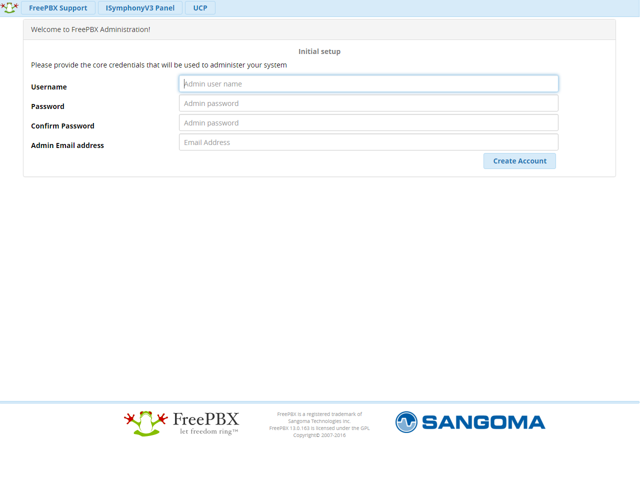 次に、Add TrunkからAdd SIP (chan_sip) Trunkを選択すると、次の画面になる。