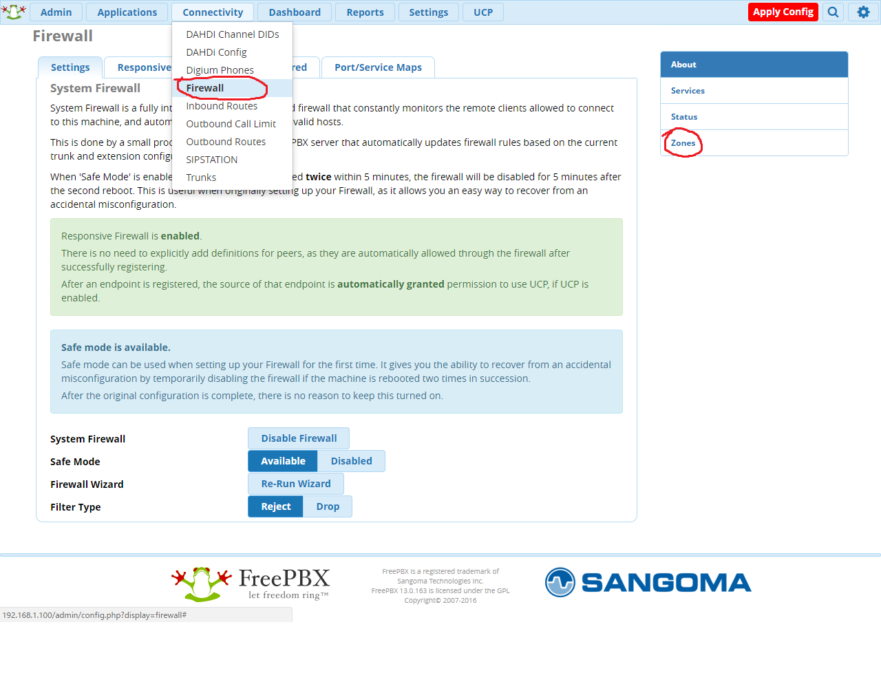 上メニューの、Applications→Extensionsから内線番号を追加・削除・内線番号ごとの設定の変更ができる。